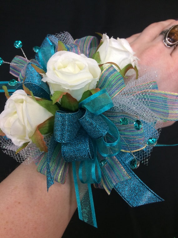 Aqua Corsage Wristlet Teal Corsage Bracelet Corsage And Etsy