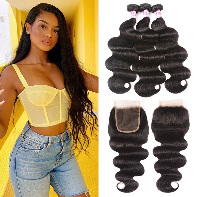 Beautyforever Brazilian Body Wave Lace Closure With 3 Bundles