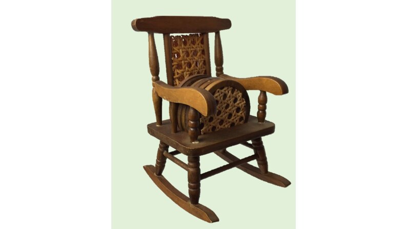 Miniature Wooden Rocking Chair Caned Back Holds 6 Round Wicker Etsy