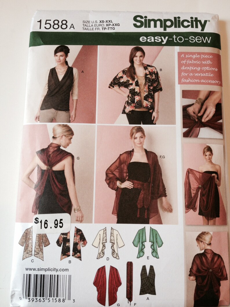 Simplicity 1588 Ladies Easy Kimono Jacket Wrap Top Scarf