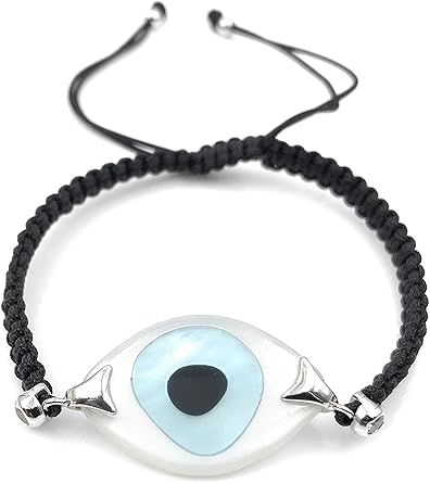 Amazon Com Mother Of Pearl Silver Evil Eye Black String Woven