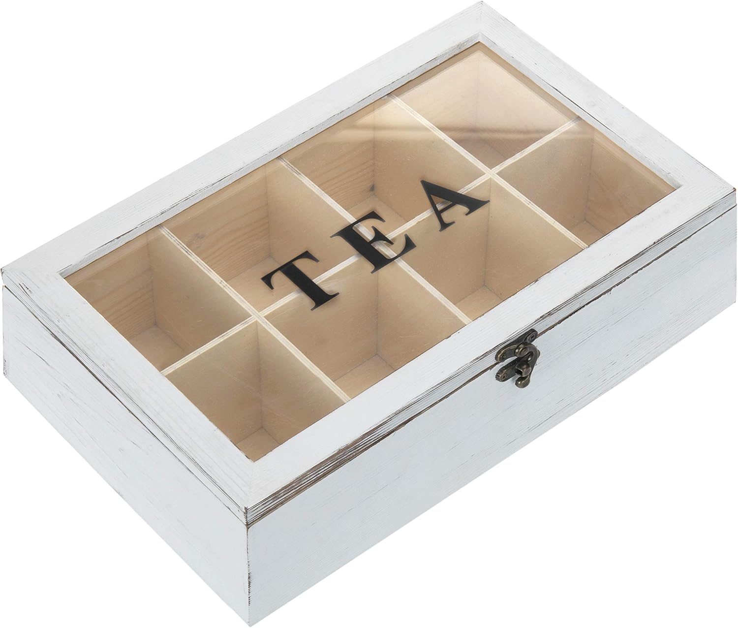 Amazon Com Mygift 8 Compartment Vintage White Wood Tea Bag