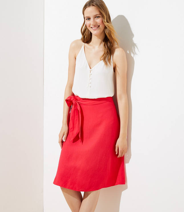 Tie Waist Linen Blend Skirt