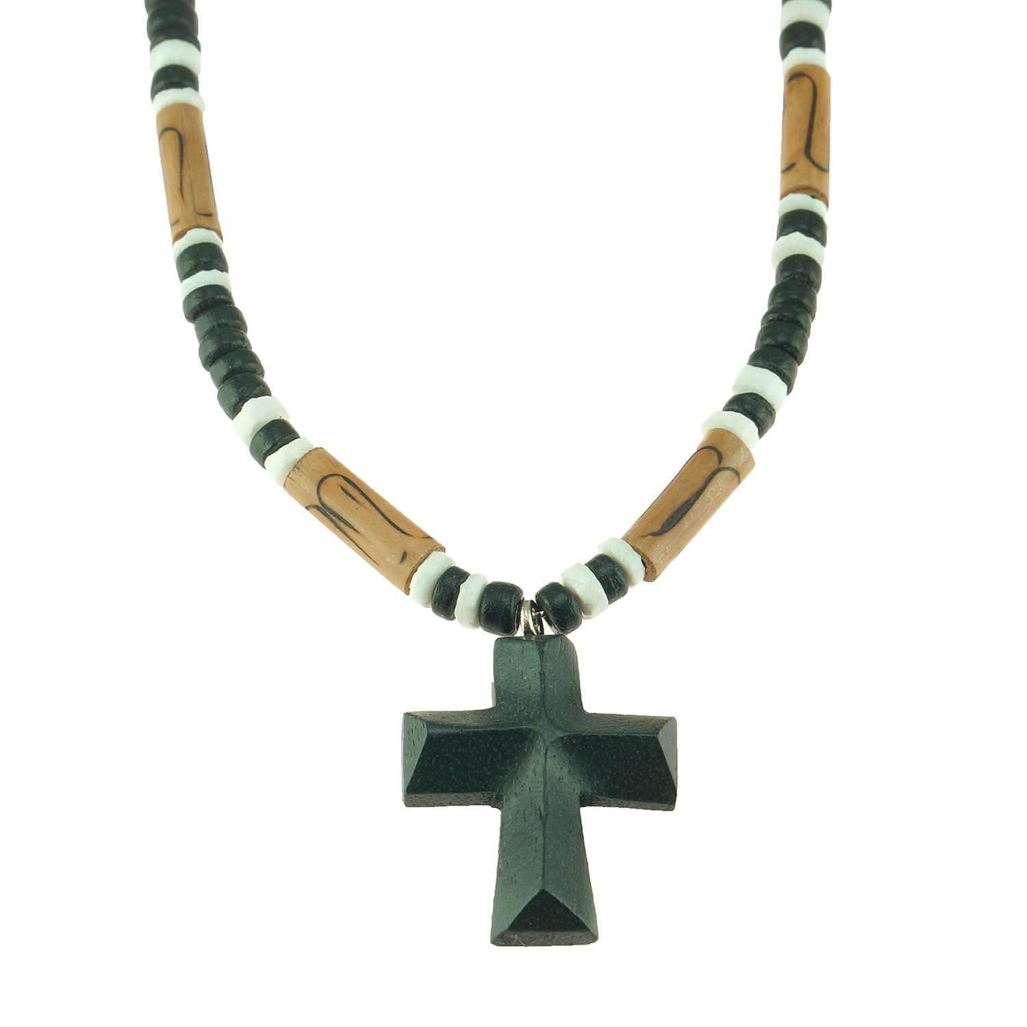 Wholesale Discount Wooden Cross Pendant Necklace Vintage Beads