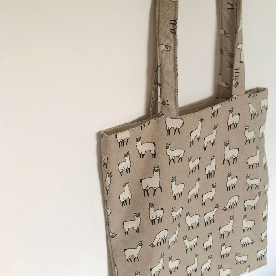 Llama Print Tote Bag With Calico Lining And Inside Pocket Etsy