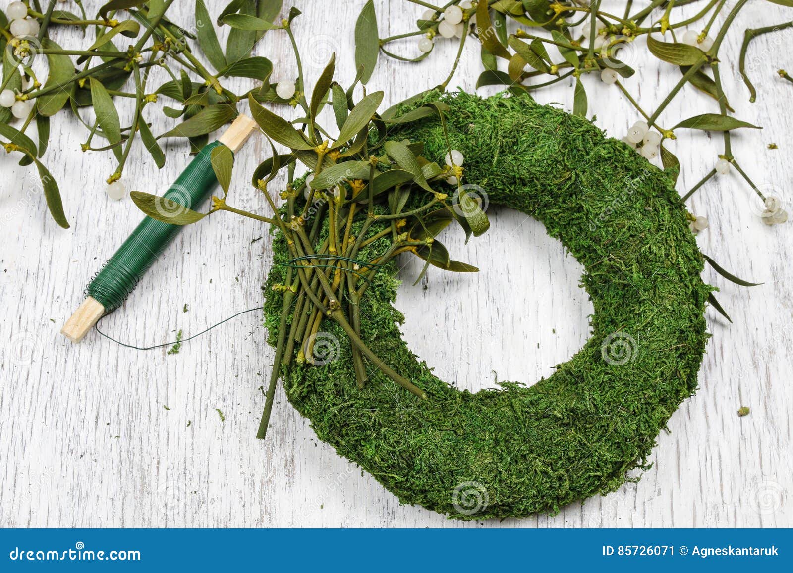 Florist At Work How To Make Mistletoe Wreath Step By Step Stock