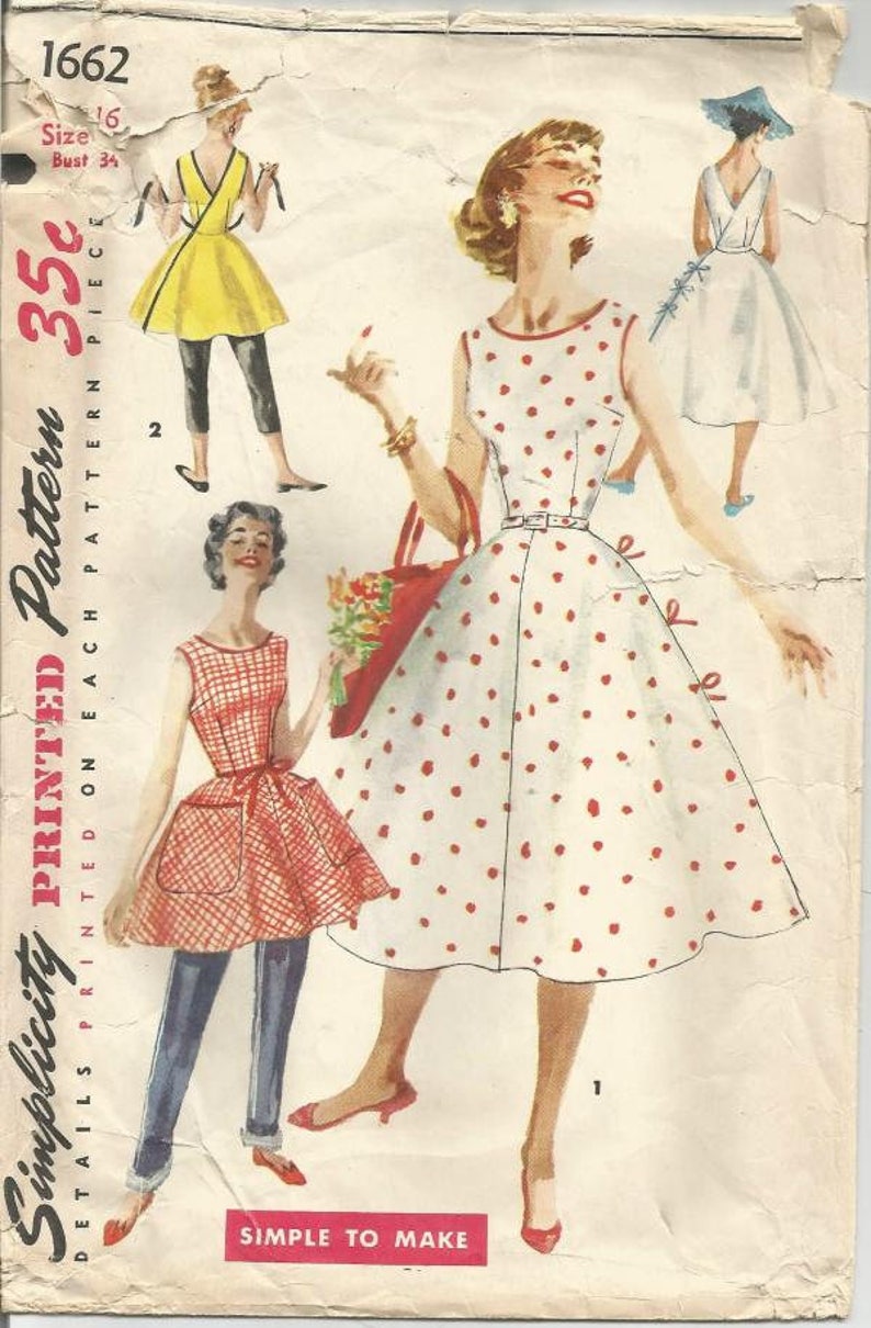 1950s Fab Wrap Around Dress Tunic Top Or Apron Pattern Simplicity
