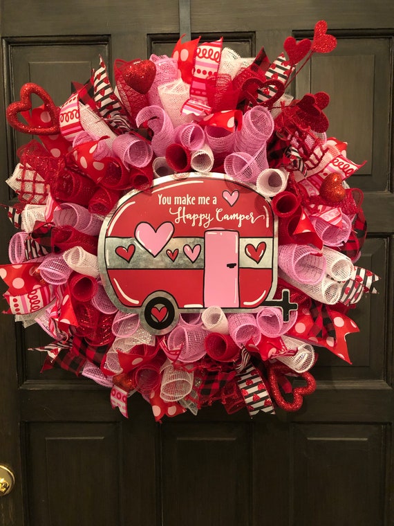 Rv Valentine Deco Mesh Wreath Happy Camper Valentine Wreath Etsy